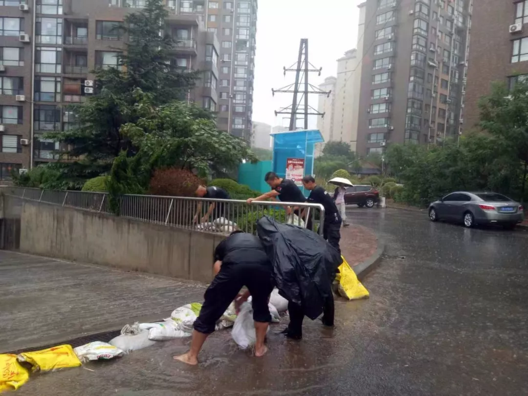 在這緊急時刻,福佳物業(yè)的員工們都堅守在工作崗位,8月2日大雨來臨,在風(fēng)雨里他們反復(fù)加固停車場防洪沙袋,確保業(yè)主出行不受影響。