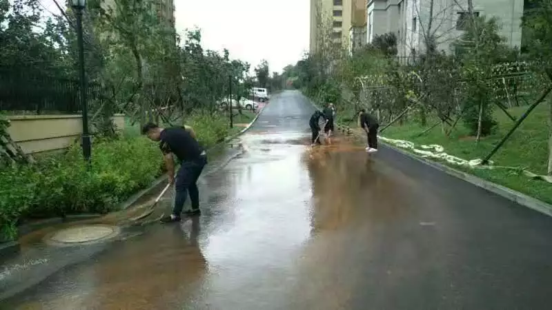 據(jù)天氣預(yù)報顯示,雖然臺風(fēng)“利奇馬”大幅減弱,但未來三日內(nèi)大連地區(qū)仍有降雨。對于以“福佳集團,幸福全家”為使命的福佳物業(yè)人來說,戰(zhàn)斗還沒有結(jié)束!