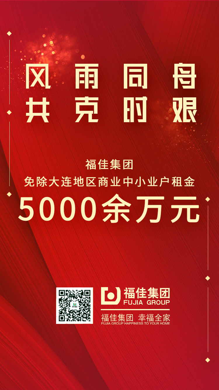 持續的疫情防控工作對商業零售行業產生一定影響,為減輕中小業戶經營壓力,福佳集團決定免除大連地區中小業戶租金共計5000余萬元,和廣大中小業戶一起風雨同舟,共克時艱。