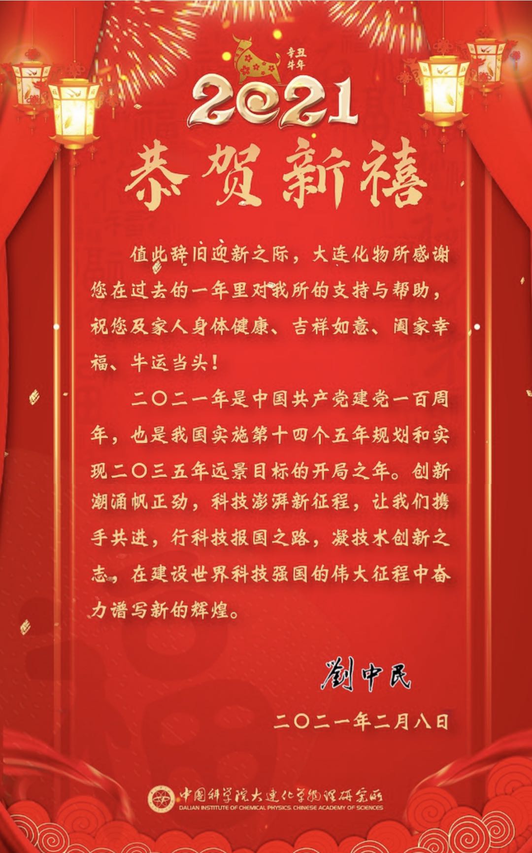 中國(guó)科學(xué)院大連化學(xué)物理研究所新年賀詞