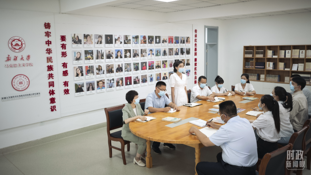 △新疆大學,鑄牢中華民族共同體意識研究基地的討論現場。(總臺央視記者王哈男拍攝)