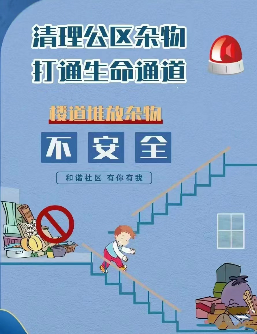 4、不要在家中存放易燃易爆物品,樓道不要堆放物品,防止堵塞安全通道。