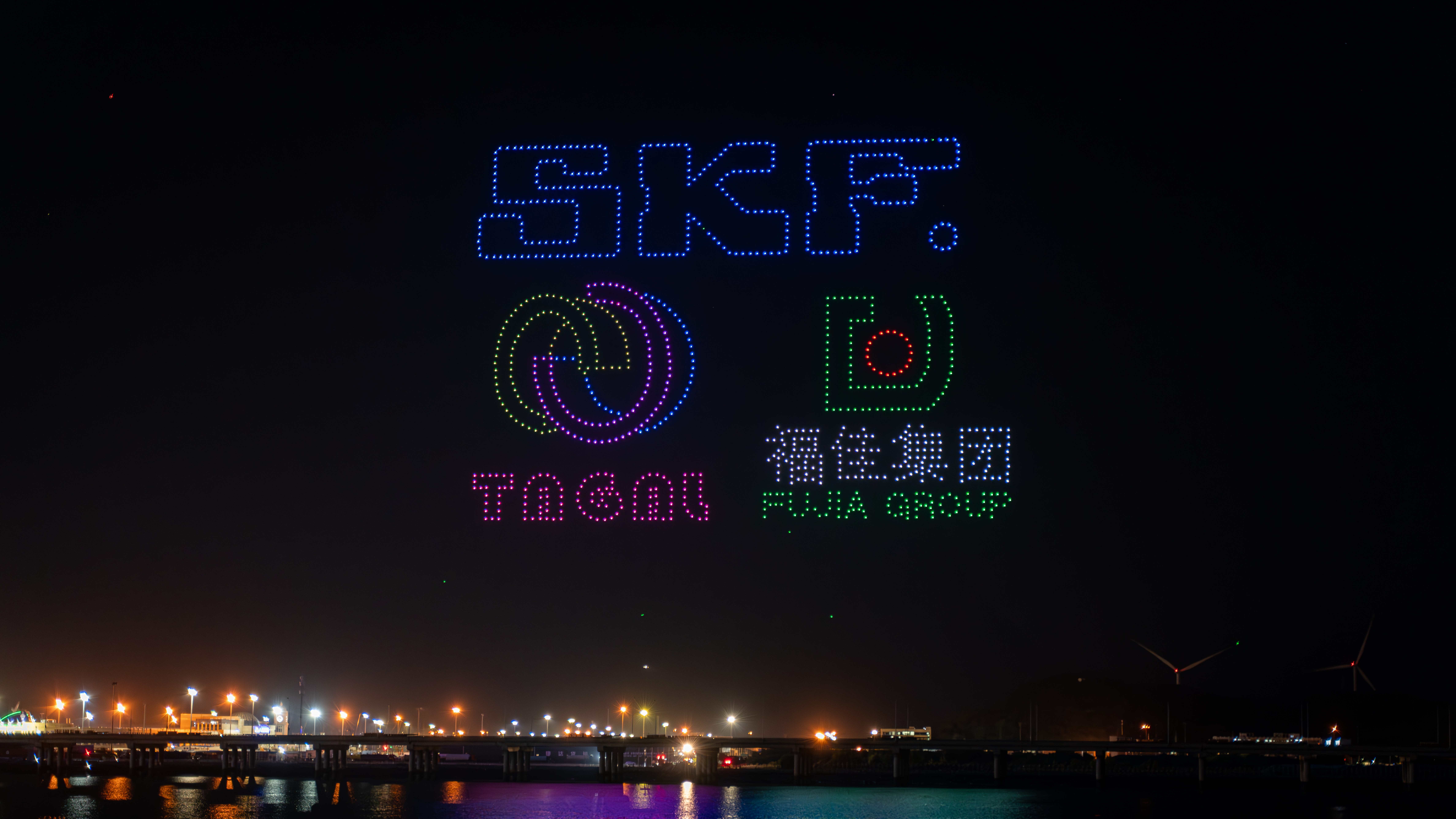 無人機表演點亮夜空,呈現出大連開發區、金普新區的發展歷程,展現了這片熱土的改革開放基因和創新奮進力量!