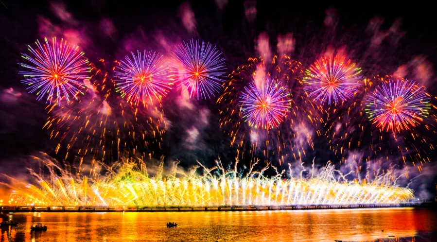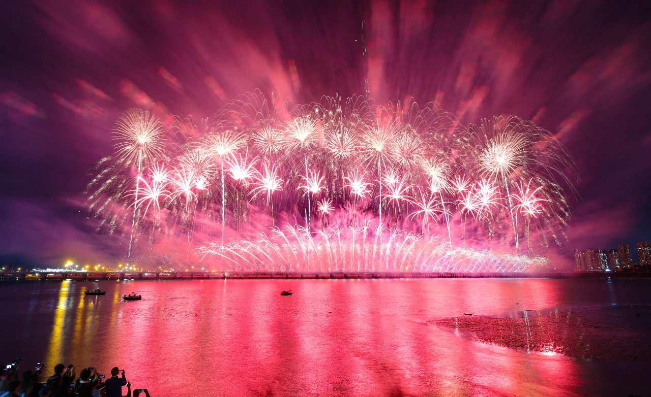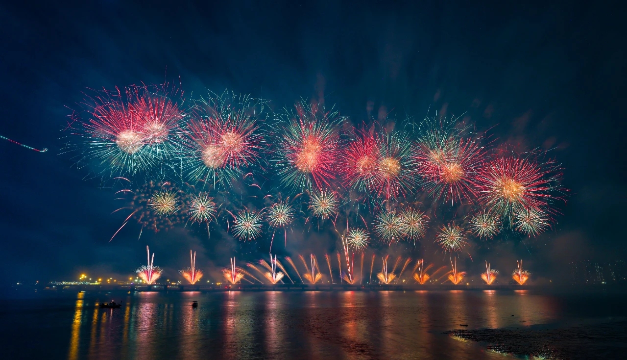 9月24日晚,大連經濟技術開發區建區40周年系列活動之“華彩盛世·金普海上焰火秀”在振連路跨海大橋開發區段炫彩綻放。