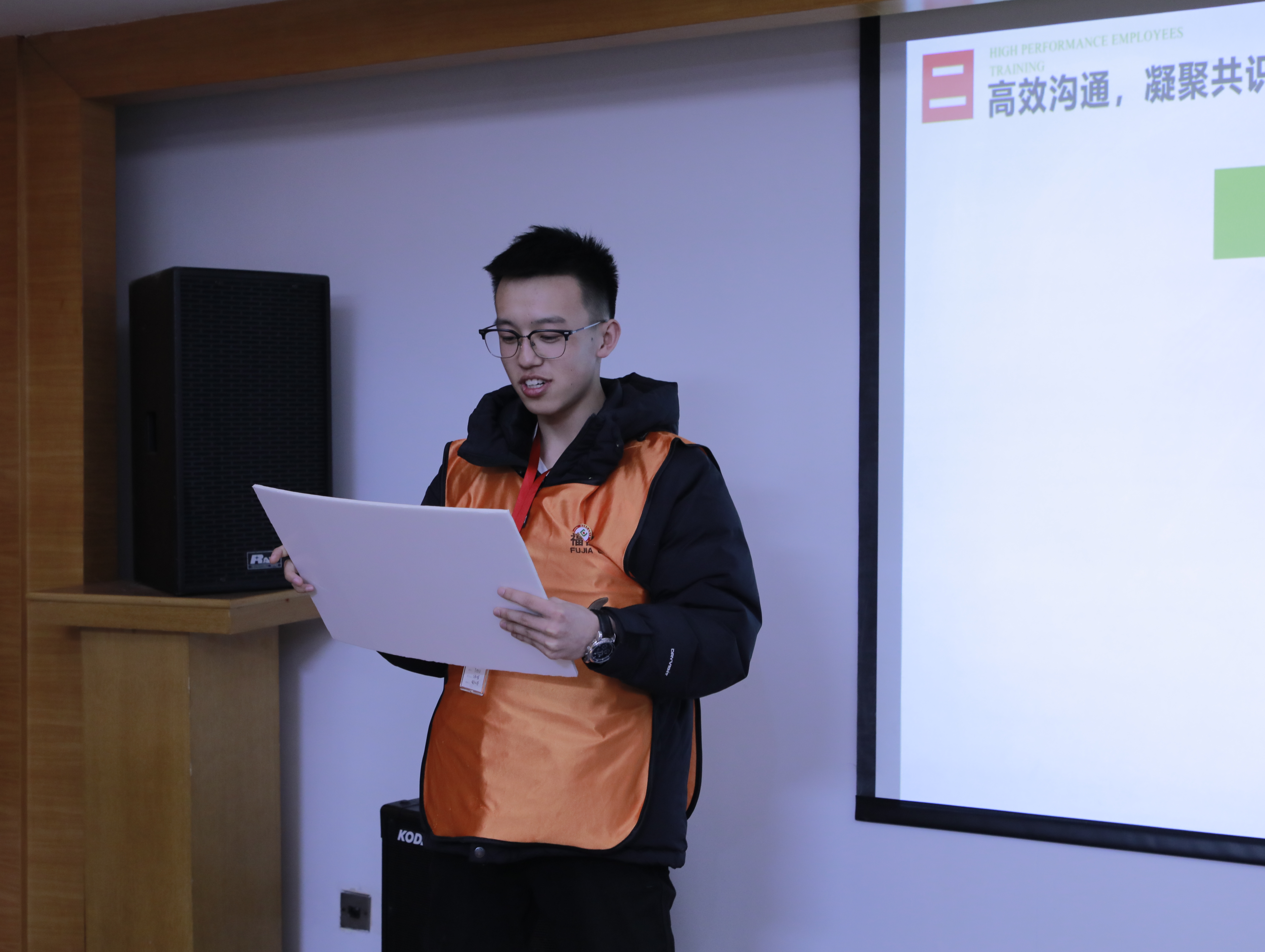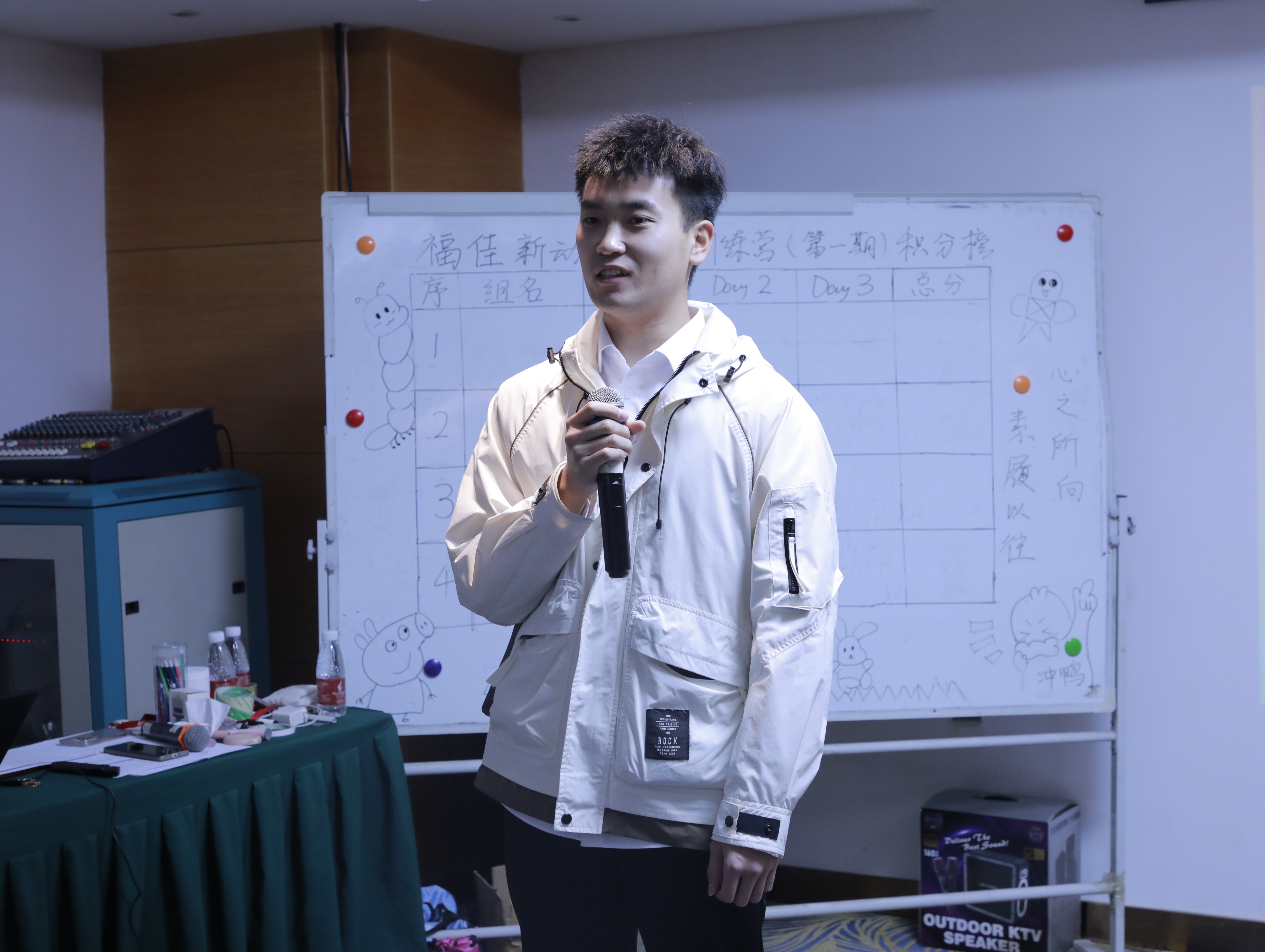 首日,培訓聚焦“破冰”與“凝聚”。在自我介紹環節結束后,學員們鄭重佩戴上定制工牌與司徽,這也標志著他們完成了從“大學生”到“福佳人”的身份轉變。