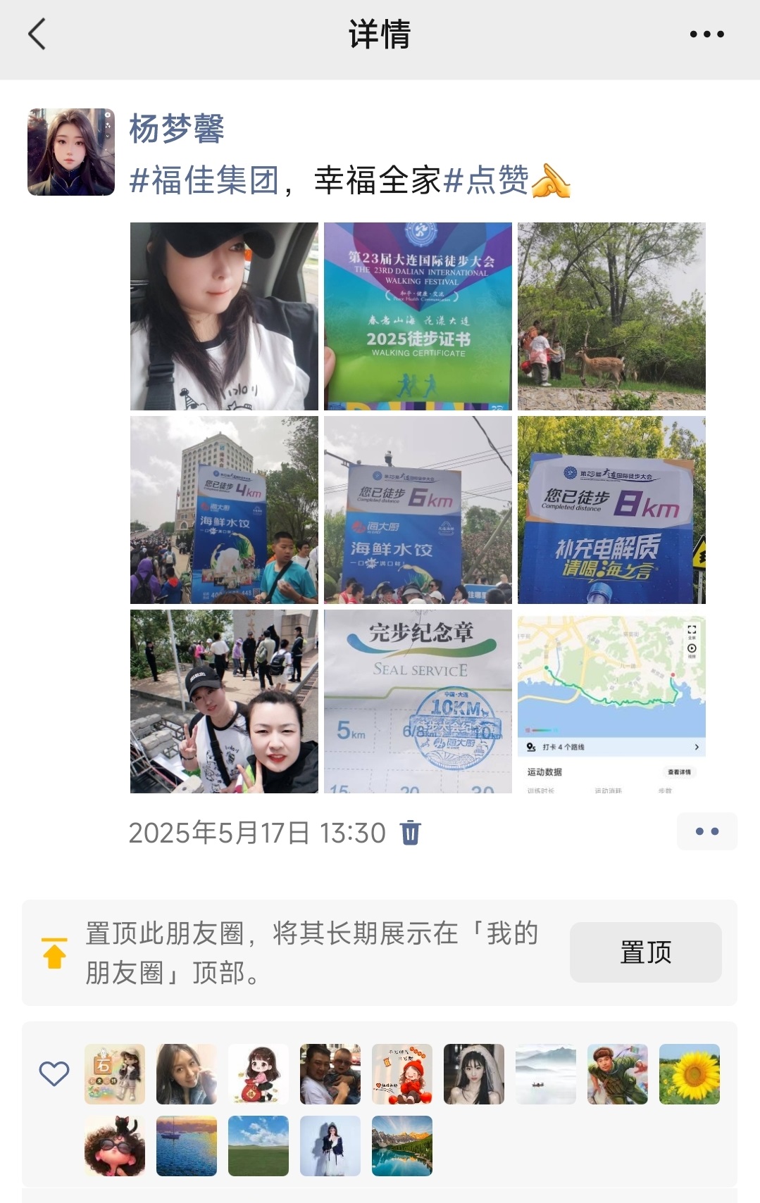 為深化活動意義,福佳集團特別策劃“霸屏隨手拍”朋友圈熱度賽。參與者沿途拍攝徒步風光、團隊風采,傳遞健康生活理念與企業文化。活動吸引眾多員工自發記錄山海美景、徒步過程中的活力瞬間,以及團隊打卡的溫暖畫面。朋友圈正能量內容持續刷屏,充分展現了福佳集團品牌形象和員工風彩。