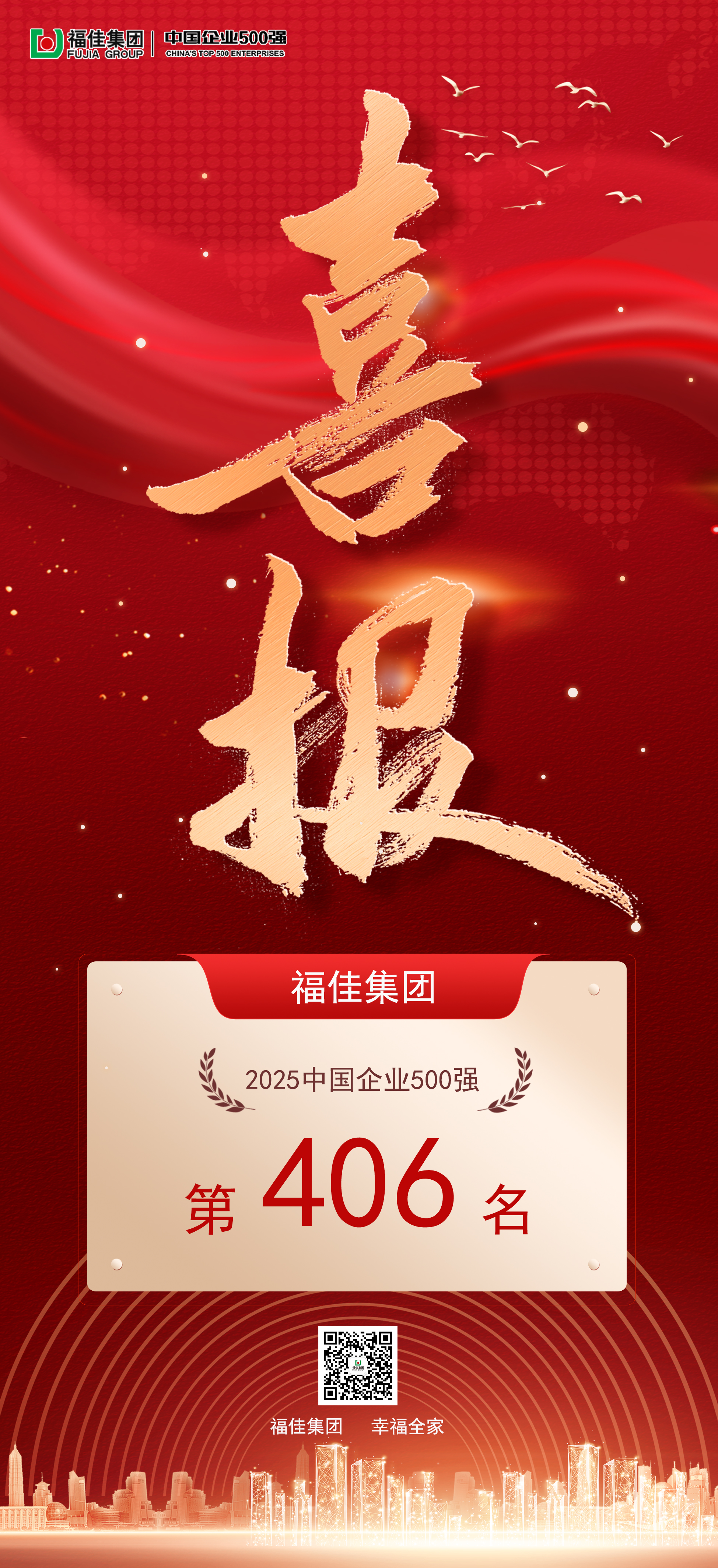 喜報丨福佳集團榮膺中國企業(yè)500強第406名!