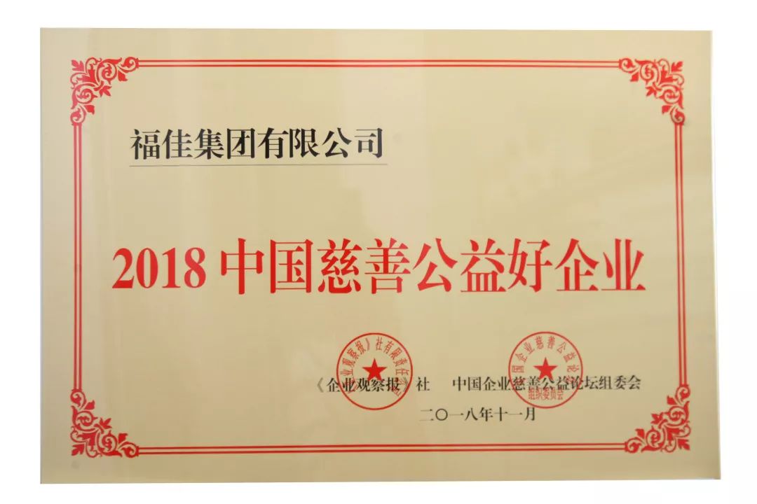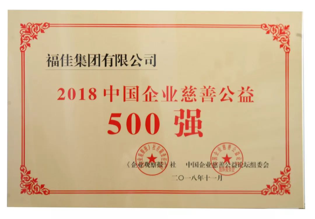 11月16日,2018中國(guó)企業(yè)慈善公益500強(qiáng)發(fā)布暨第二屆中國(guó)企業(yè)慈善公益論壇在北京會(huì)議中心召開。福佳集團(tuán)榮獲2018中國(guó)企業(yè)慈善公益500強(qiáng)發(fā)布中排名第348名,2018中國(guó)慈善好企業(yè)第156名。